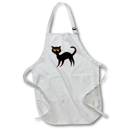 3dRose black Cartoon Kitty with Multicolored Eyes - Full Length Apron, 22 by 30-Inch, black, with Pockets (apr_150803_4)