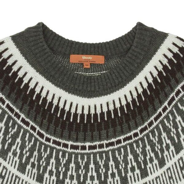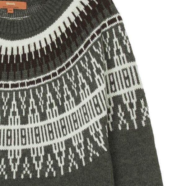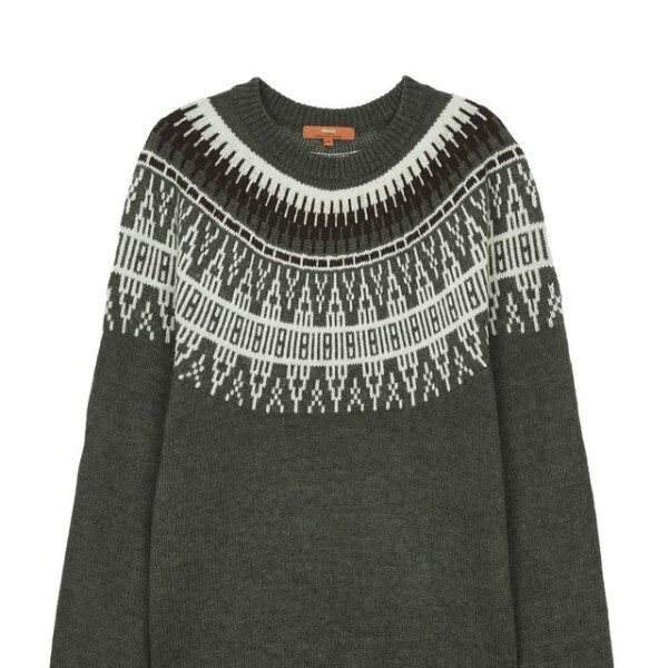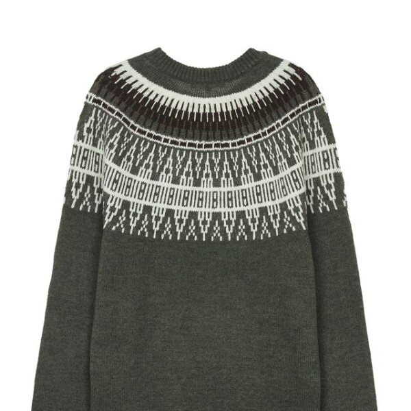 상단으로 컬러를 더한 멋스러운 패턴이 돋보이며 네크라인과 소맷단, 밑단으로 립 조직을 배색해 원단의 늘어짐을 방지한 긴팔 니트입니다.