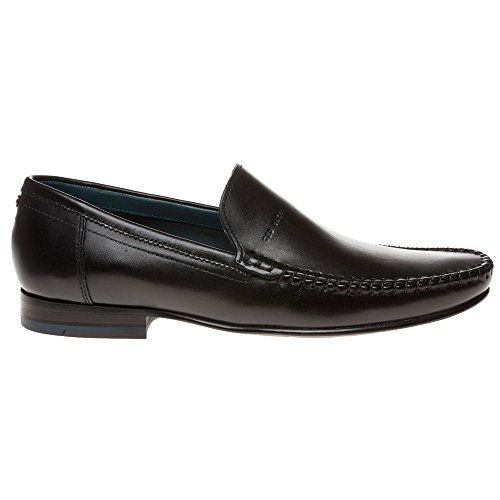 Binding : Apparel Product Description For a suave, luxurious shoe showcasing unrivalled attention to detail, Ted Baker presents the mens black Simeen 2 slip on loafer. Rich in elegance and style, the smooth black leather uppers sport embossed branding to the tongue, with the moccasin style stitching and pink edged trim injecting a classic shoe with a dose of elegance. With a gentlemans corner and stacked heel finish, these are a wardrobe necessity. 0