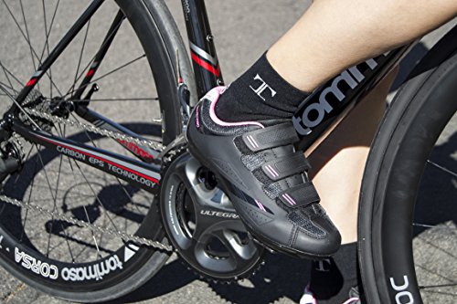 Binding : Apparel Product Description Whether you are looking to conquer the hardest roads, trails, mountains, or your local spin class, Tommaso shoes give riders what they need to reach that next level of training and performance. For most cycling enthusiasts your first pair of clipless shoes and pedals makes cycling a completely new beast. For the employees of Tommaso bikes a clipless set-up is always the first recommendation for cyclists looking to making the next step. The Pista shoe offers women's specific perfection for road biking, spin class, commuting, or fitness riding. They are specifically designed to offer riders maximum comfort and power transfer, assuring more riding efficiency. The Strada 100 is our entry level dual compatible (SPD SPD-SL) shoe, designed to be the perfect segway to clipless riding, for riders who want the most out of every pedals stroke. It offers 3- strap comfort and adjustability, with a stiff fiberglass reinforced polyamide sole for incredible power transfer. 0
