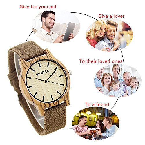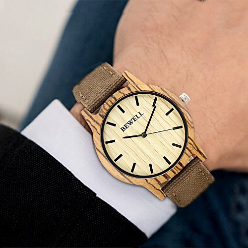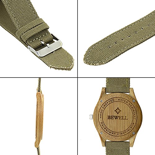 -. Title : Bewell Lightweight Bamboo Watch Unisex Wristwatch Canvas Band Ultrathin Quartz Watch