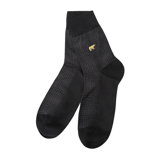 - 모노톤의 패턴 조직 디자인을 적용한 남성 양말.