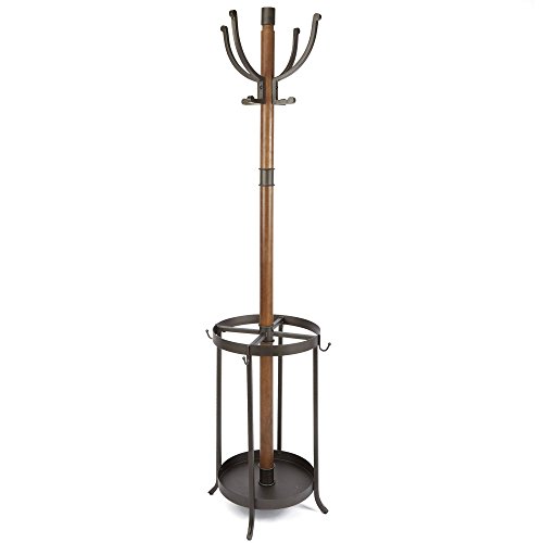 -. Binding : Kitchen -. Brand : Better Homes & Gardens -. Color : Brown -. EAN : 0050276998242 -. Feature : Industrial style coat rack with wooden pole and 8 metal hooks / Umbrella stand features 4 openings and 4 hooks / Some assembly required / Umbrella Stand Dimensions: 22.25"H with 14" diameter / Dimensions: 18"W x 18"D x 72"H -. IsAutographed : 0 -. Label : Better Homes and Gardens -. Manufacturer : Better Homes and Gardens -. ProductGroup : Home -. ProductTypeName : HOME -. Publisher : Better Homes and Gardens -. Size : 18"W x 18"D x 72"H -. Studio : Better Homes and Gardens -. Title : Industrial Style Coat Rack with 8 Metal Hooks and Umbrella Stand Combo, Dark Metal and Wood Grain Finish -. UPC : 050276998242