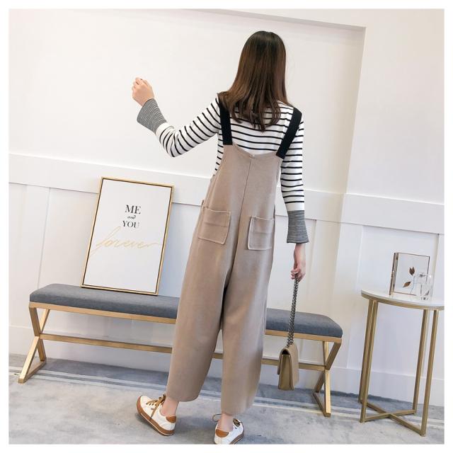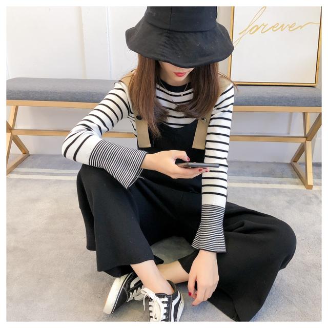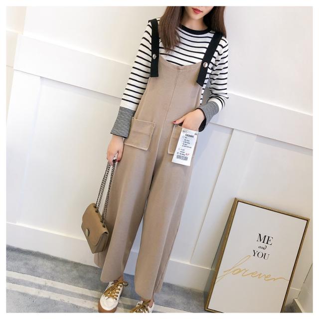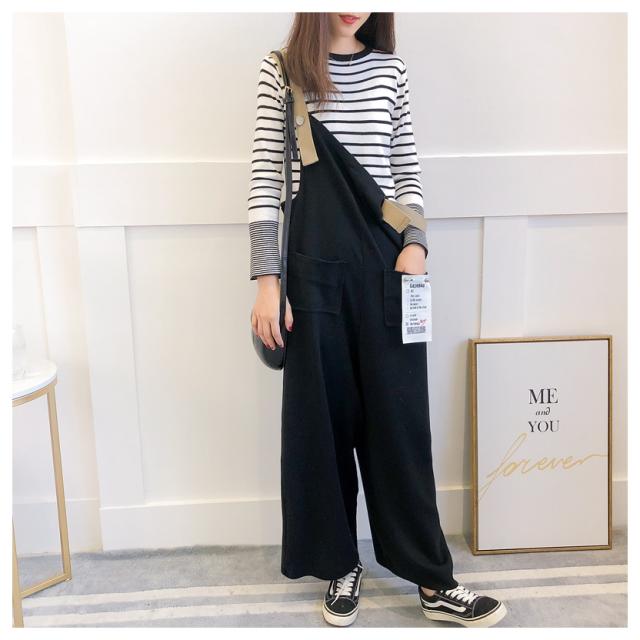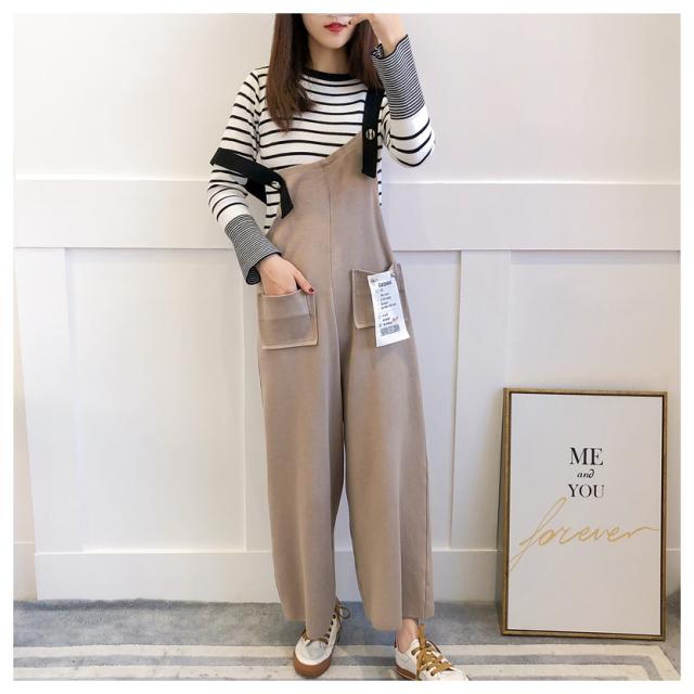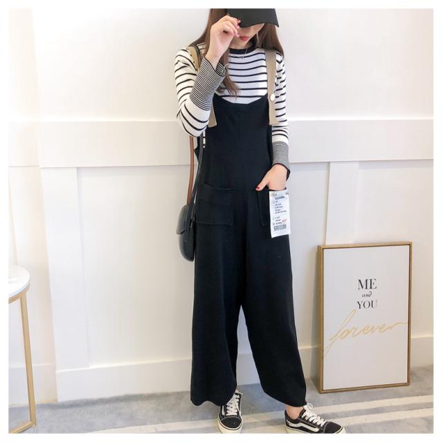 ボーダー ニット オーバーオール セットアップ フェミニン 上品 シンプル スタイリッシュ マタニティ ワンサイズ