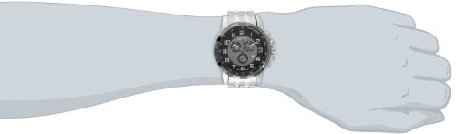 -. Feature : Chronograph features include 60 second, 30 minute timer, and date sub dials / Silver-tone case and stainless steel bracelet / Silver-tone, luminescent, hands and hour markers on the Black & Gun dial / Swiss Quartz Chronograph movement / Water-resistant to 10 M (33 feet) / Chronograph features include 60 second, 30 minute timer, and date sub dials / Silver-tone case and stainless steel bracelet / Silver-tone, luminescent, hands and hour markers on the Black & Gun dial / Swiss Quartz Chronograph movement / Water resistant to 99 feet (30 M): withstands rain and splashes of water, but not showering or submersion
