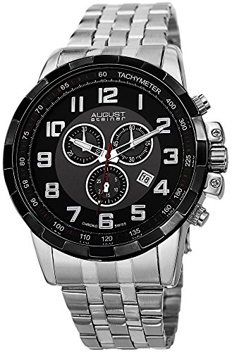 -. Title : August Steiner Men's AS8118SSB Swiss Quartz Chronograph Black & Silver-tone Stainless Steel Bracelet Watch