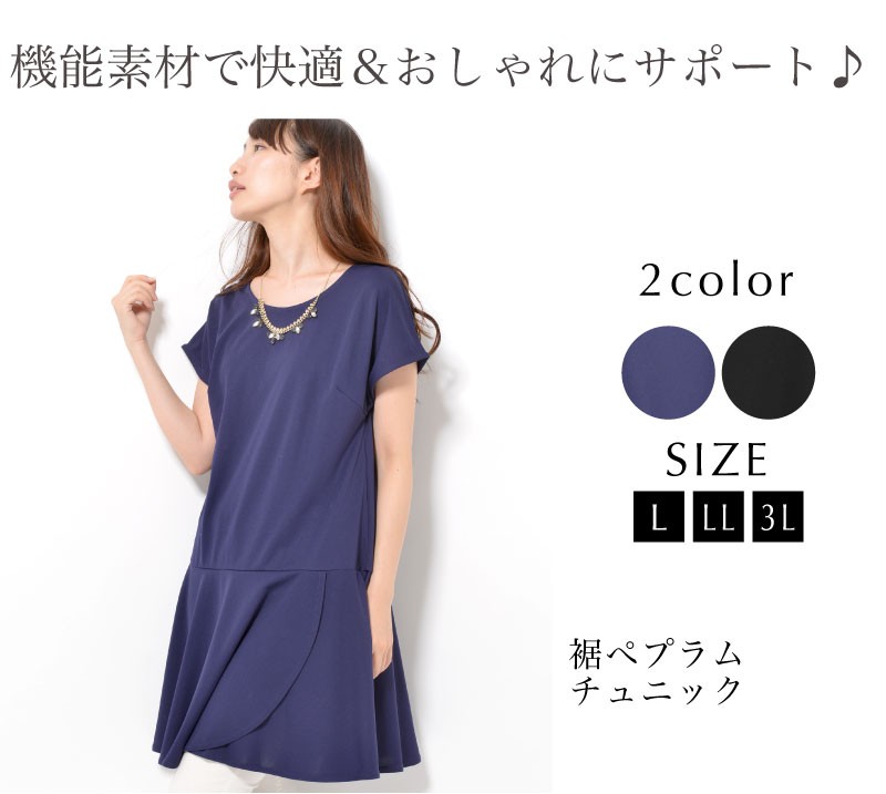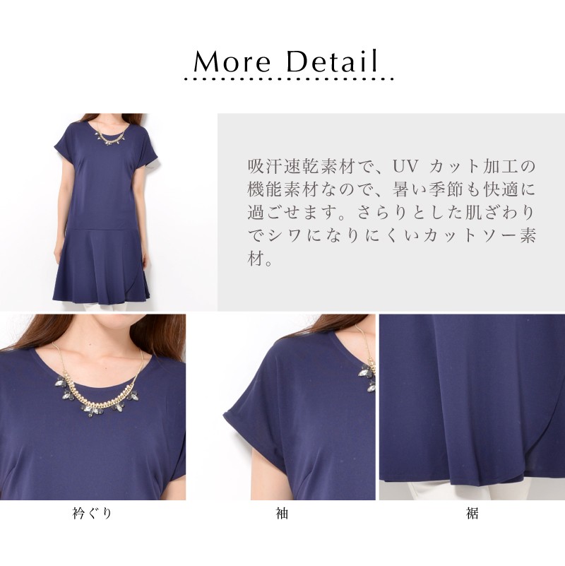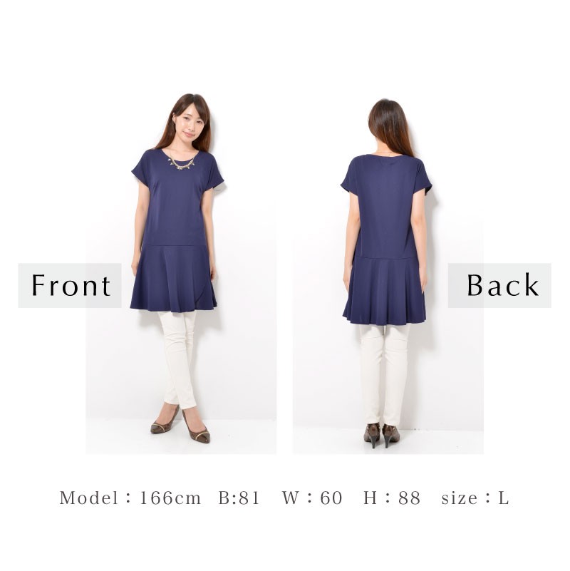 華やかなぺプラム裾で、腰まわりがすっきり見え。