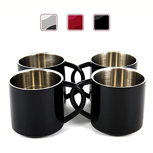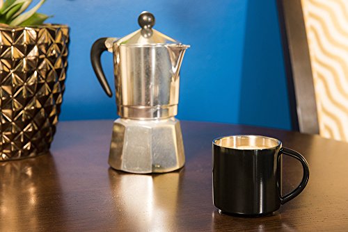 Studio : Farnsworth Lloyd Publisher : Farnsworth Lloyd Product Description Our Story In 2016 Farnsworth Lloyd set launched a set of espresso cups that were handsome, functional, durable, and affordable. They were a resounding success, customers loved them and requested we make other sizes available. In early 2017 we added a set of matching 12 oz. double wall coffee mugs, and now we are proud to present our new XL Espresso Cup sets. Stylish Espresso Cup Sets Available in Black, Red, or Silver we offer Espresso Cup Sets designed to match any style. The Black Espresso Cups look great and can blend in with a modern minimalist style or stand out as a conversation piece in a more traditional setting. Durable Functional Black Espresso Cups Double wall black espresso cups made in 18/0 Stainless Steel keep the heat or cold on the inside preventing burnt fingers or condensation and can survive the occasional drop or spill better than glass or cermaic. Now Double the Capacity By popular demand this new style can hold a maximum capacity of 4oz, providing 3.5 oz (`100 ml)of usable capacity for your Espressos, Doppios, Ristrettos, Lungos, Macchiato, Cafe Noisettes, Cortados and more. These will fit King of Joe Espresso Shot Tassimo Shot T-Diskx, along with other similarly sized single servings pods from Keurig, and Nespresso, or full-size espresso machines from Breville, Gaggia, etc. Note: These are double shot espresso cups, they have a maximum usable capacity of three and a half fluid ounces (3 1/2 fluid ounces, 103 ml, one hundred three milliliters). Each cup has an interior diameter of two and three-eighth inches (2.375", ~5.5cm) and an interior height of two and one-quarter inches (2.25", ~6cm). Hand wash only with warm water and gentle detergent. 0 |
