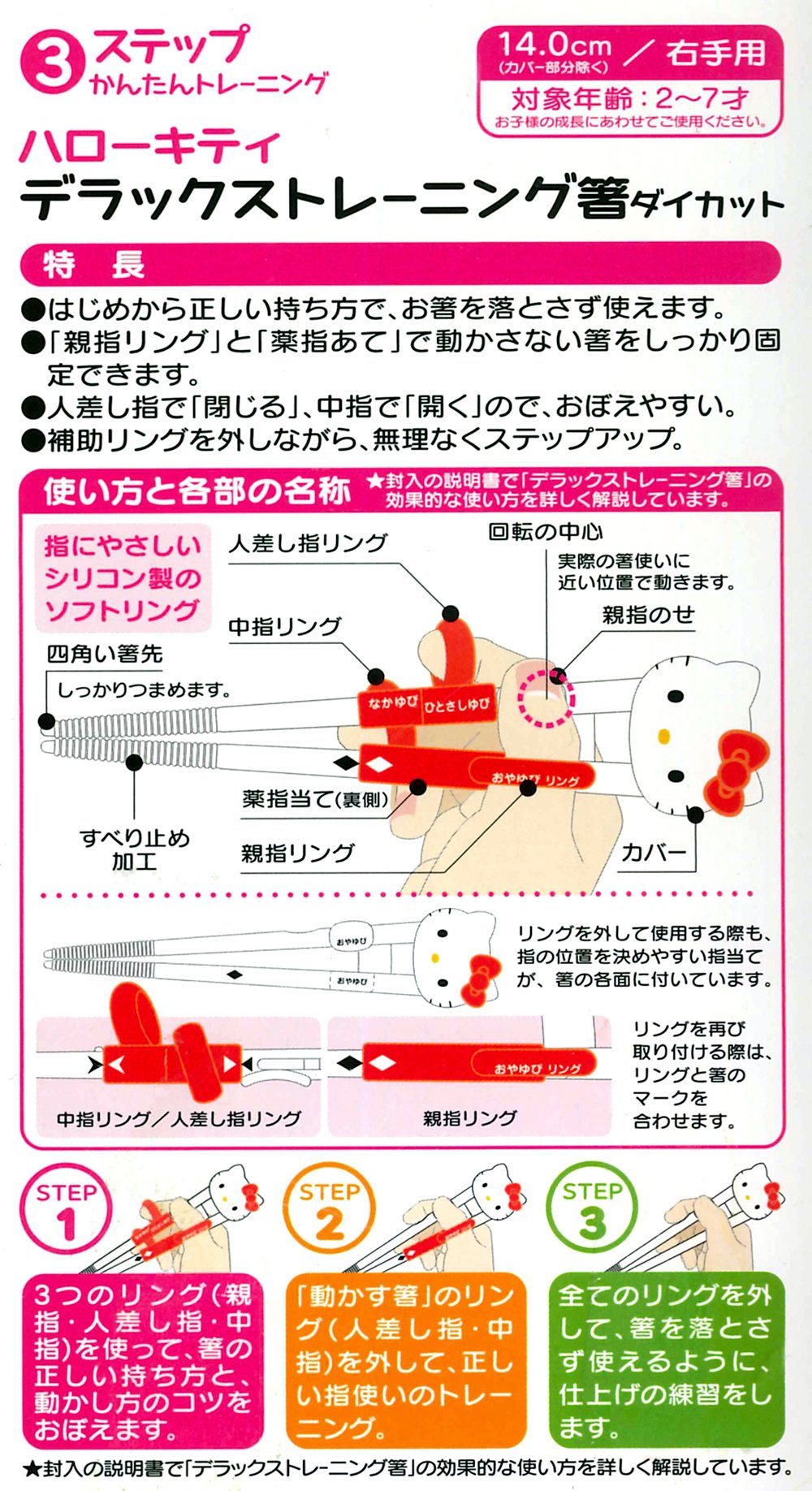Skater DX training chopsticks 14cm Hello Kitty bear and ribbon ADXT1D