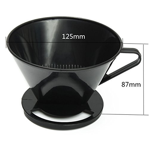 -. Feature : Material: PP(Polypropylene) / Coffee cone dimension: Approx 125x87mm / Package included: 1 x Coffee Cone; 1 x Measuring Spoon / Perfect for filter coffee impurities / Use with coffee filter papers size 2 or size 4