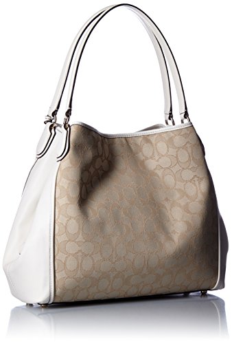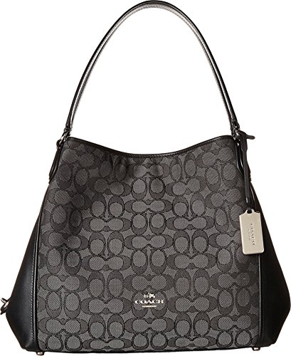 Signature jacquard. Inside zip, cell phone and multifunction pockets. Zip-top closure, fabric lining. Handles with 9 1/2' drop. Imported.