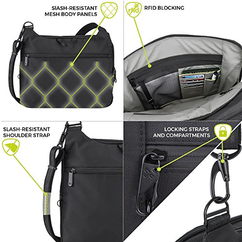 -. Binding : Apparel -. Brand : Travelon -. Color : Multi -. Department : unisex-adult -. Feature : Two locking compartments / Front compartment has RFID protected passport and card slots, 2 zip pockets, and a pen loop / Rear compartment has padded pocket for iPad or tablet, and 2 open top wall pockets / Front zip pocket locks for security / Rear zip pocket -. Label : Travelon -. Manufacturer : Travelon -. PackageQuantity : 1 -. ProductGroup : Apparel -. ProductTypeName : LAGE -. Publisher : Travelon -. Studio : Travelon -. Title : Travelon Men's Anti-Theft Urban E/w Tablet Messenger