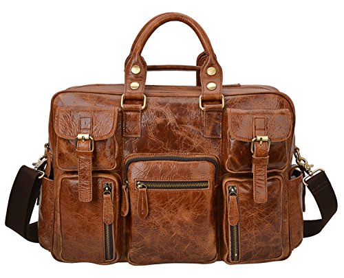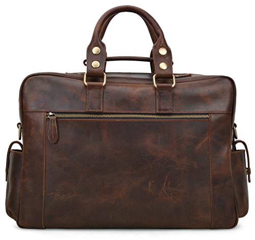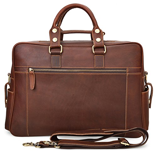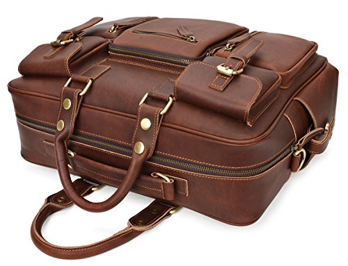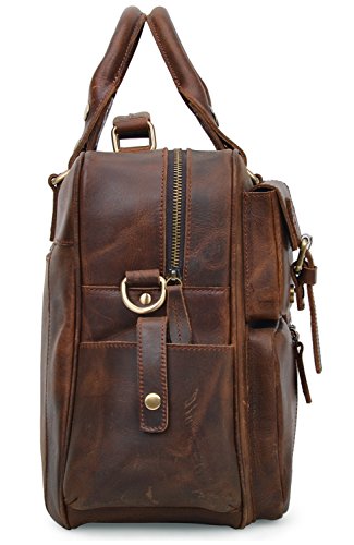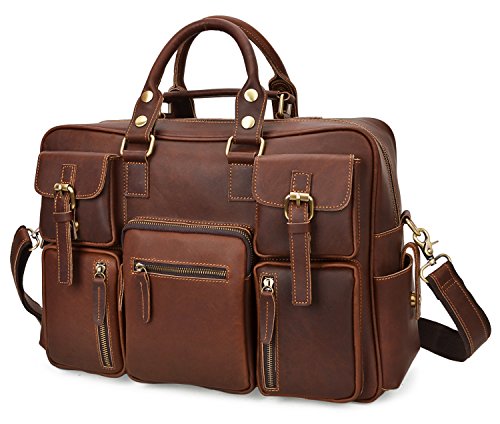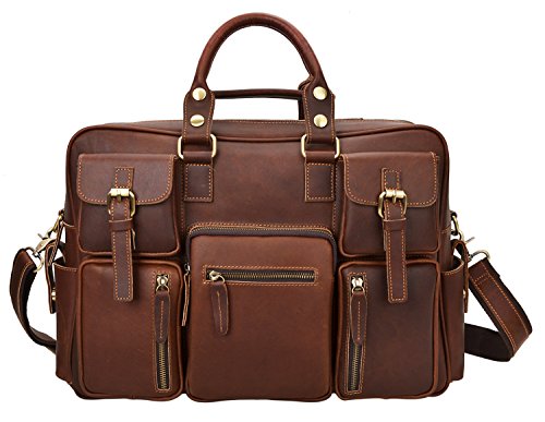 -. Feature : 100% GENUINE LEATHER: Made by high quality Crazy Horse Leather; Dimensions: (L)16.5" x (H)11" x (W)5"; Weight: 2.38kg(5.24lbs); / LARGE CAPACITY: 6 front zipper pockets, 2 side pockets, 1 back zipper pocket, a large main zipper pocke: 2 slip pockets, 1 zipper pocket and removable laptop sleeve; / DURABLE&PRACTICAL BAG: Can fit up to 14 inch laptop; textbooks, mobile phone, iPad, wallet, etc; Suitable for casual, work, business, everyday use; / MULTIFUNCTION: With 52" removable leather strap, can be used as tote bag, cross body bag, messenger bag, travel shoulder bag; Handles can be adjusted for more 1 inch; / GOOD CUSTOMER SERVICE: Any problems with your bag, please contact our world-class, friendly customer support team for quick solutions by contacting us through Amazon;