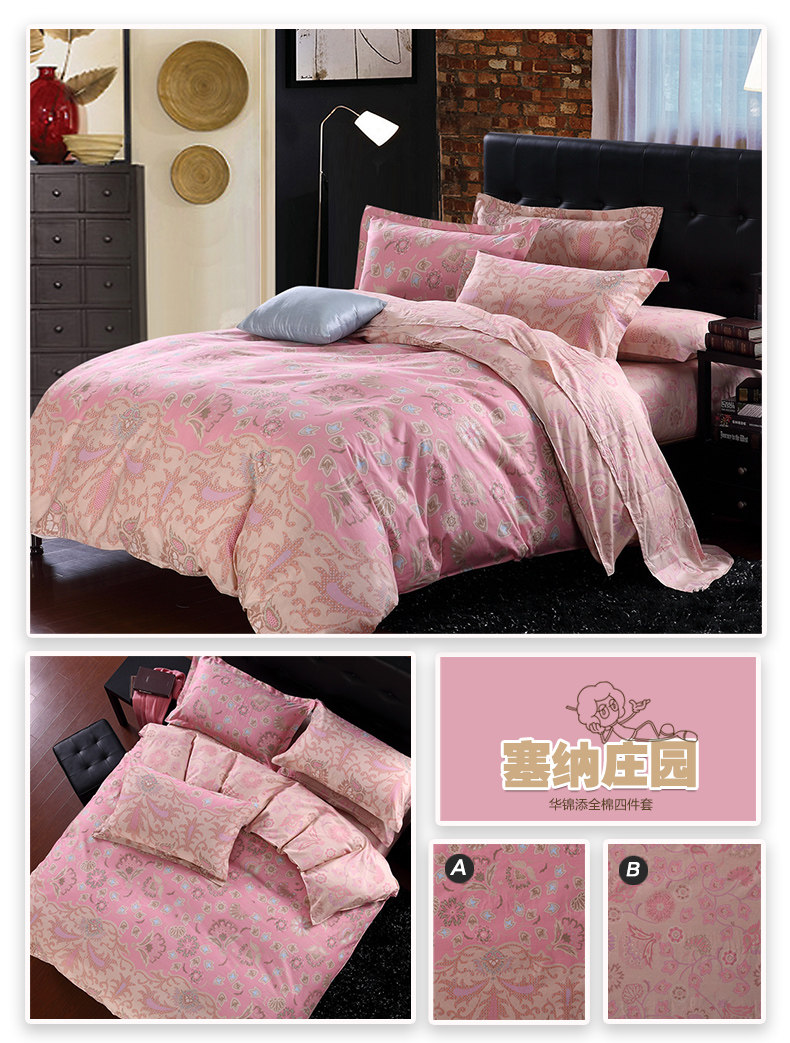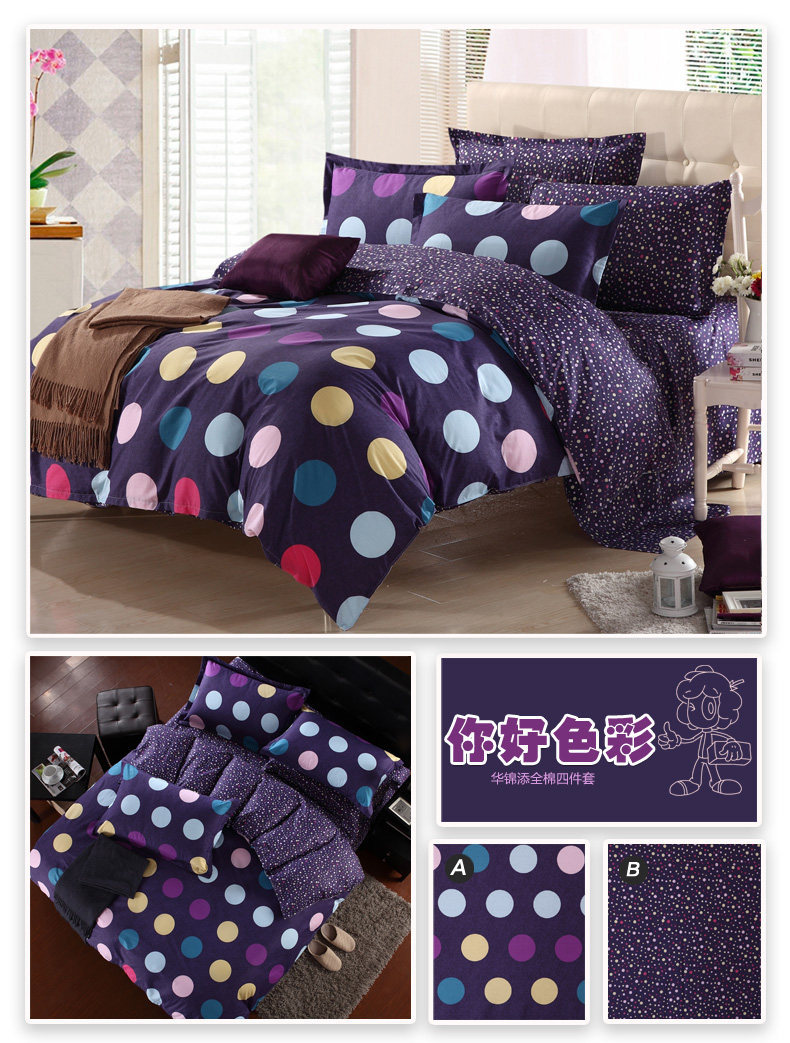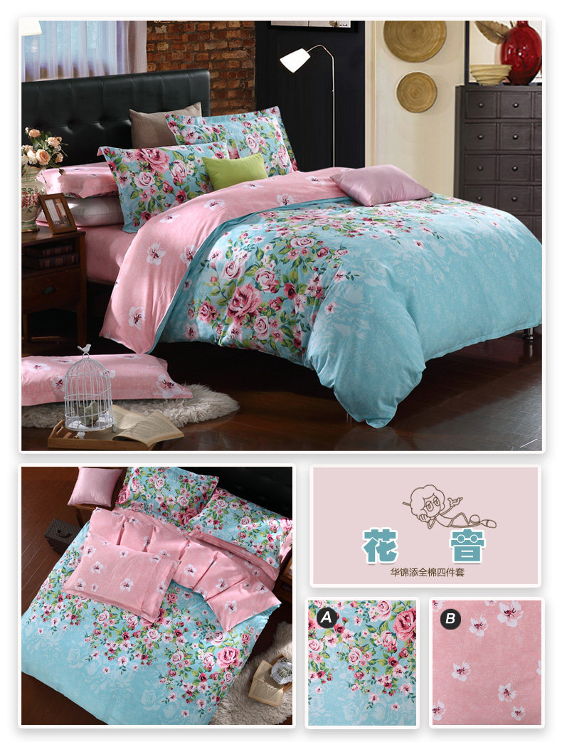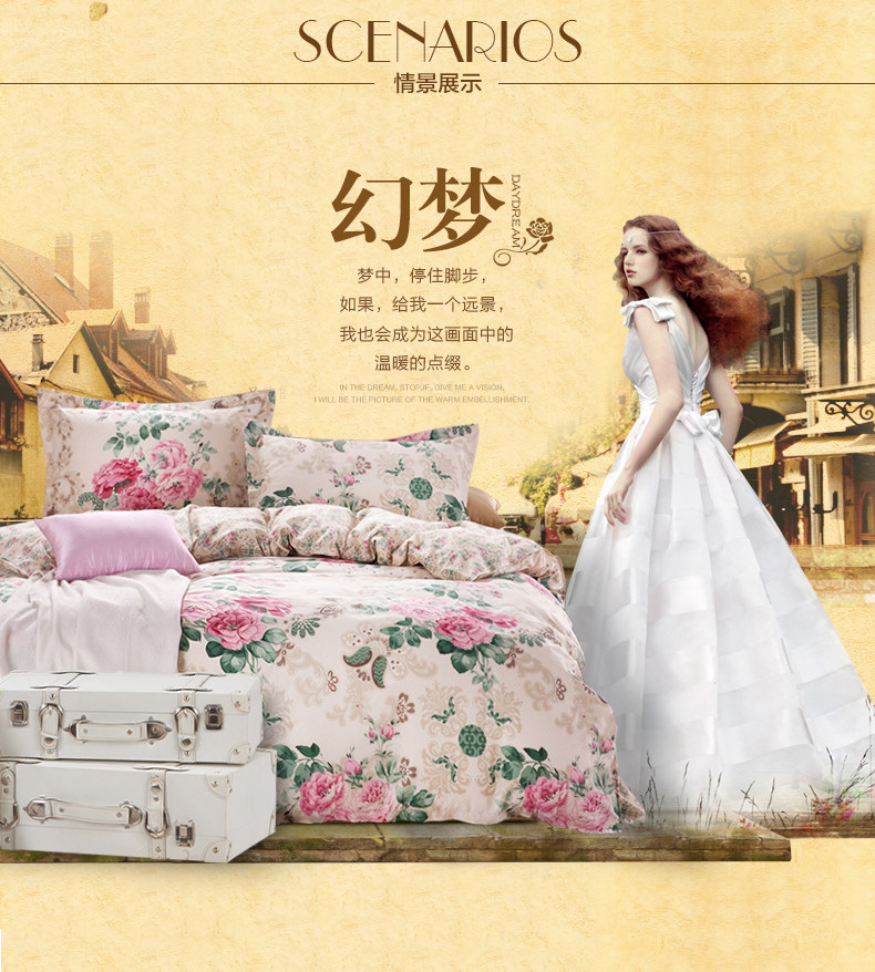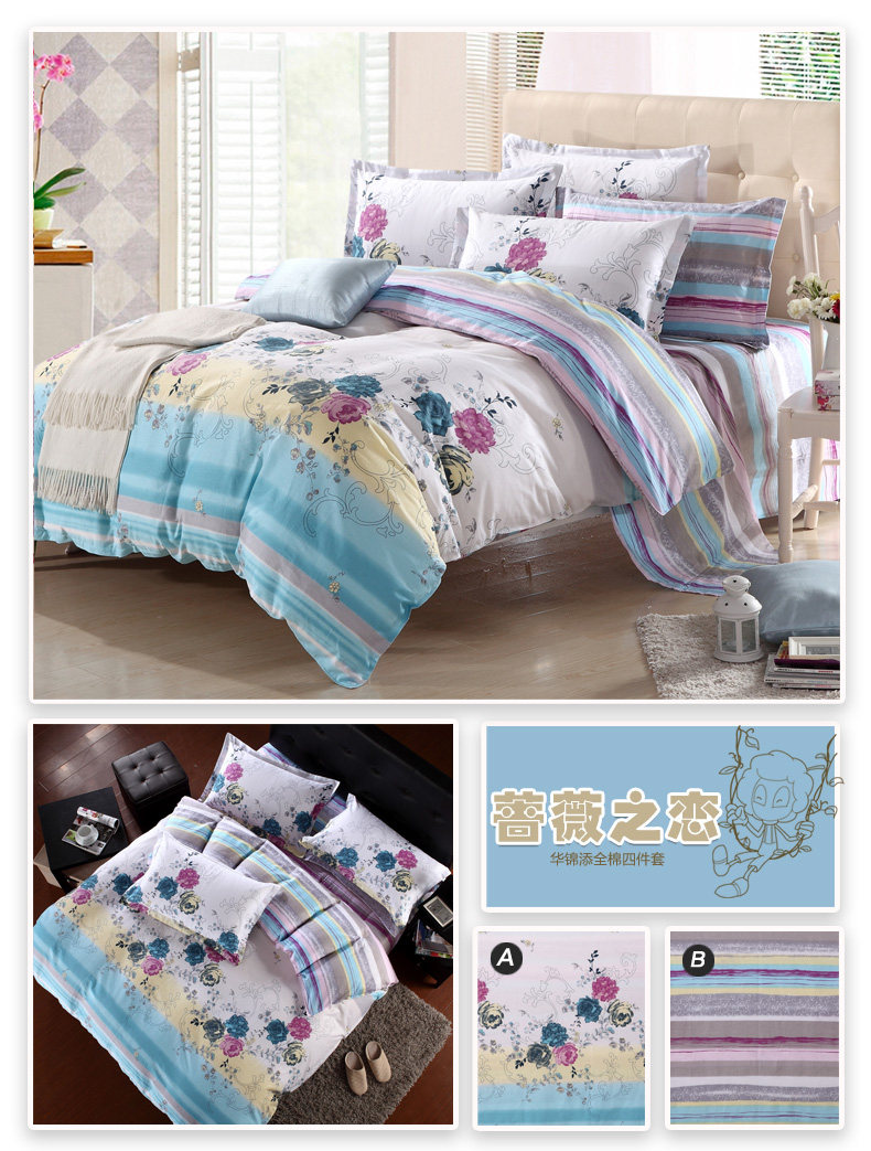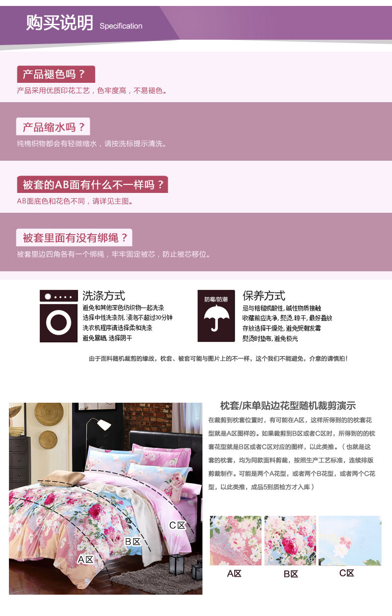 本系列四件套适于用200cm*230cm的被芯且1.5宽*2.0长或者1.8宽*2.0长的床哦!