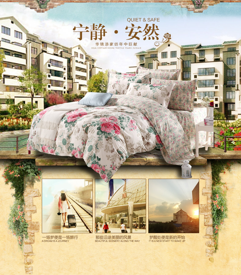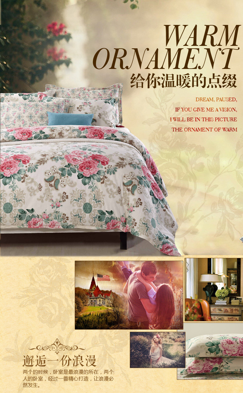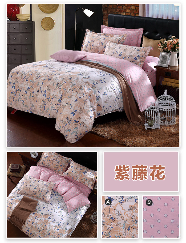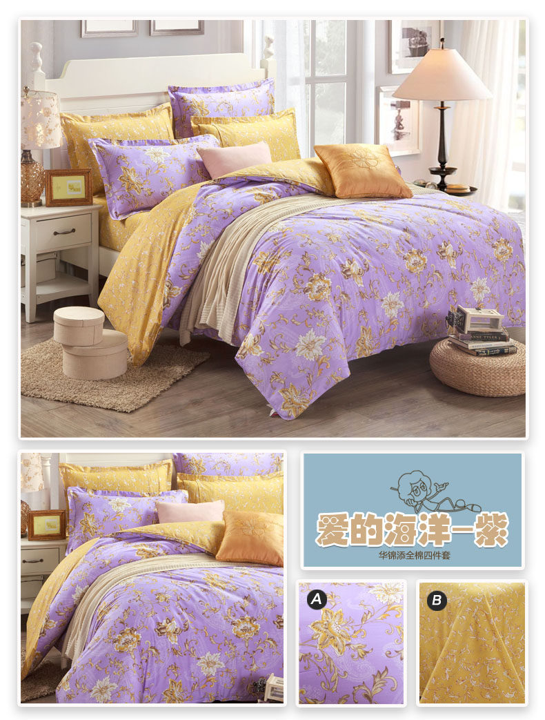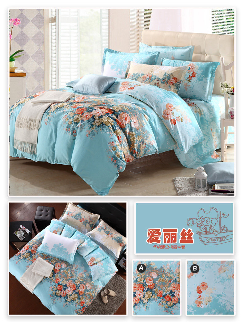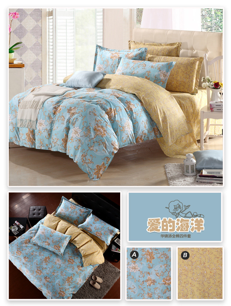 本系列四件套适于用200cm*230cm的被芯且1.5宽*2.0长或者1.8宽*2.0长的床哦!