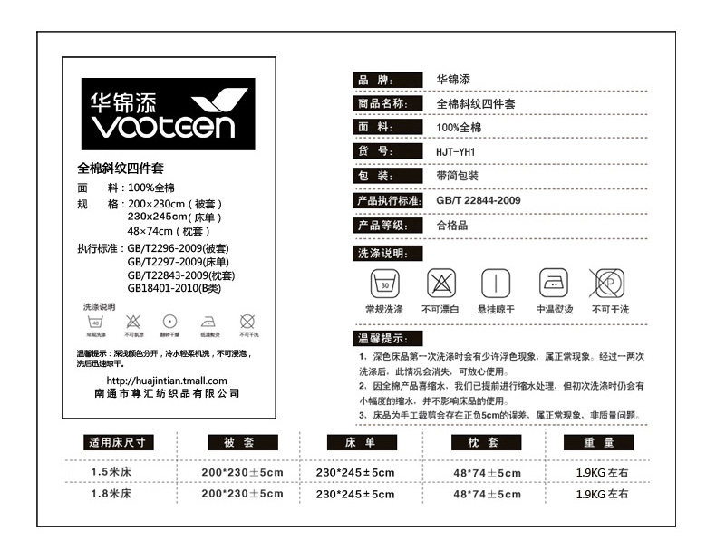 ********被套Bedding bag:200cm宽*230cm长±5cm