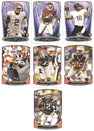 New England Patriots 2014 Bowman NFL Football complete regular issue 7 card team set including Tom Brady, Rob Gronkowski, Jimmy Garoppolo, James White, Dominique Easley, Stevan Ridley and Aaron Dobson.