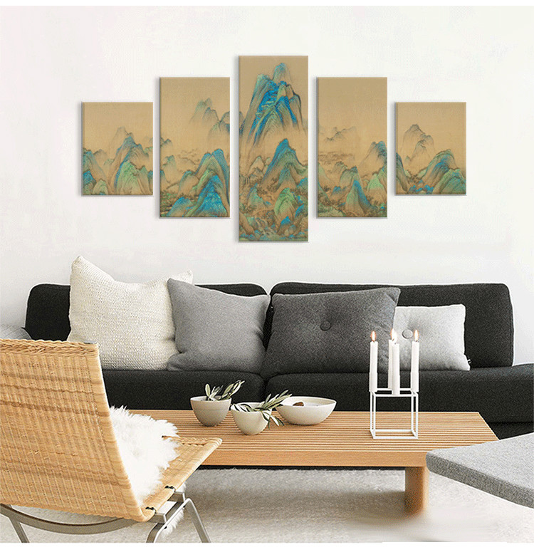 帆布5面板油画现代抽象帆布墙艺术客厅卧室办公家居装饰装饰