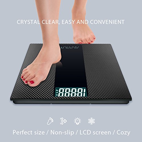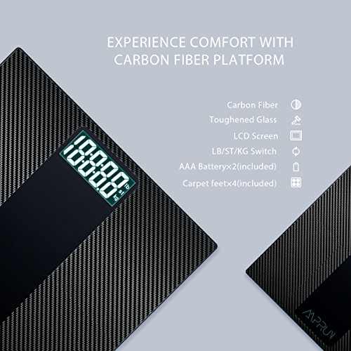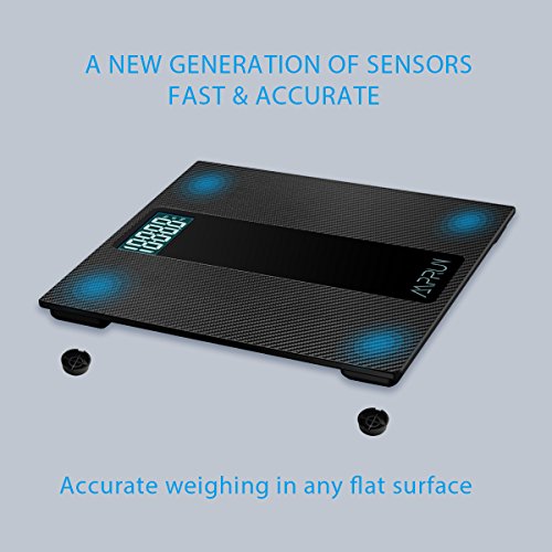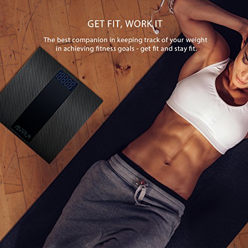 Digital Body Weight Scale Amprun Antiskid Bathroom Scales Accurate Home Personal Scale with Step-On Operation, Carbon Fibre Surface, Tempered Glass, High...