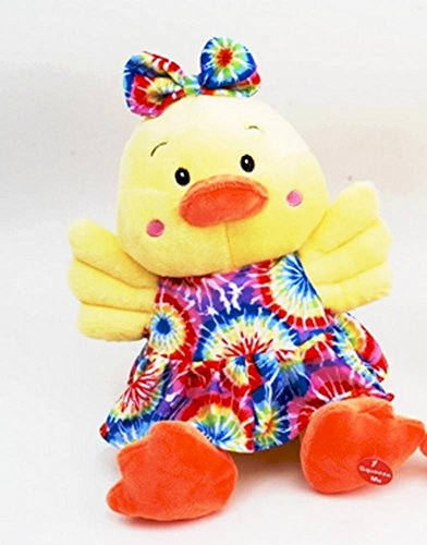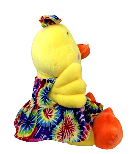 -. Feature : Super soft Yellow Duck with Dye Tie Dress. Press the foot to hear it quack / Height: 10.5" sitting / 100 % Polyester Fiber, Non Toxic and non-allergenic / Super Soft and Cuddly, / Wash cold water, air dry