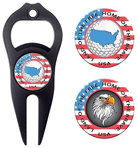 -. Title : Hat Trick Openers 6-in-1 Golf Divot Tool & Poker Chip Marker Set with USA Logo, Black