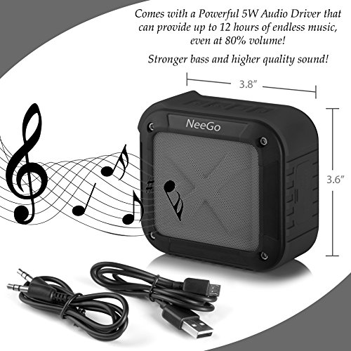 -. Title : NeeGo Outdoor Portable Bluetooth Speaker Waterproof with SD Memory Card Slot, FM Radio and 12 Hour Playtime 5W Audio Driver, Pairs with All Bluetooth Devices