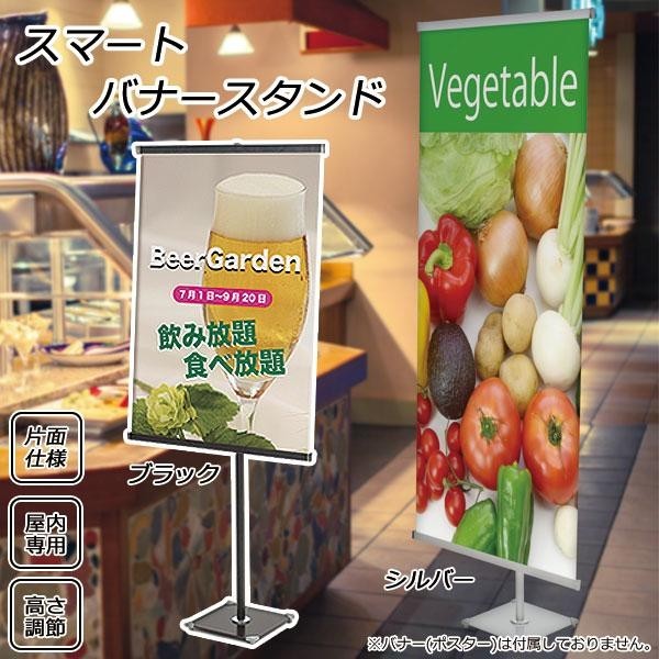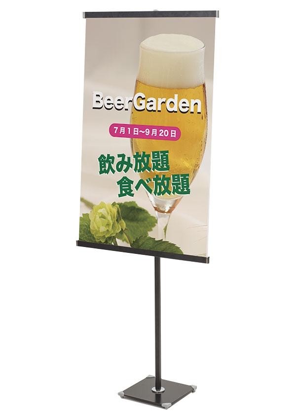 | 仕様 | 片面仕様 屋内専用 高さ調節可能 バナーサイズ:W600×H300~1800mmまで 推奨バナー素材:合成紙、ユポ(t0.15~0.25mm) |