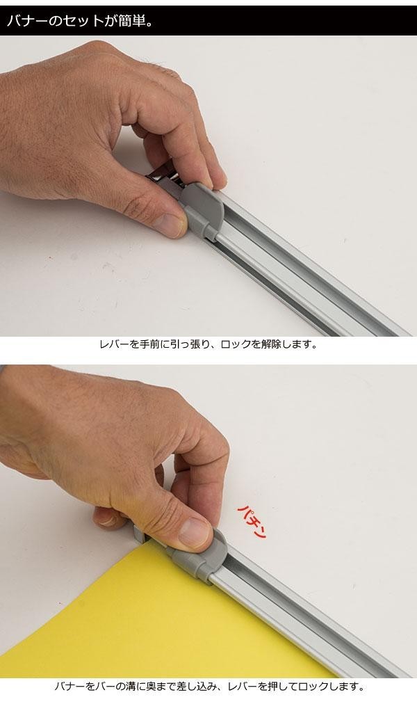 | バナー(ポスター)の取付けがワンタッチで出来ます♪ |