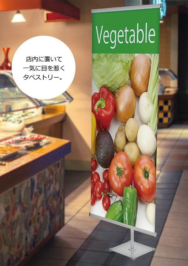 お客様の目を惹くタペストリー。簡単スピーディーにセットできます☆幅広いサイズに対応しています♪ |