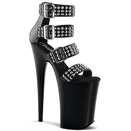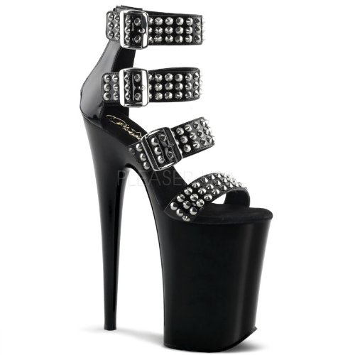 Product DescriptionHeel Height: Approx. 9' Tall. Close back multi ankle strap sandal featuring spike embellished upper and belt buckles. Back zipper.0