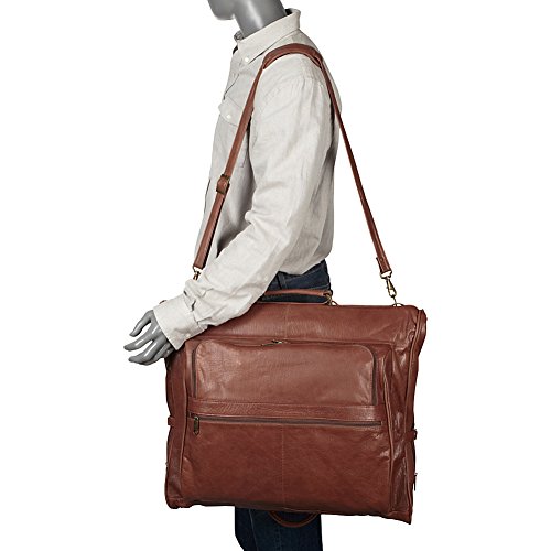 Product DescriptionThis chestnut brown leather garment bag lets you carry up to three suits comfortably, easily, and stylishly.Our low price will save you money to use on your next trip0