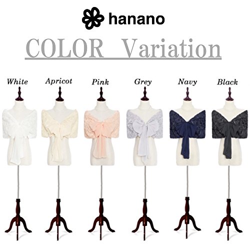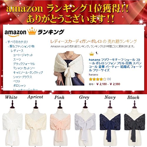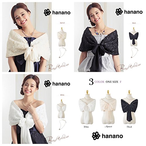 -. Feature : シフォン素材と薔薇モチーフの花がゴージャスな大判ショールです。 軽くてサラッとした肌触りです。 / スパンコールが照明にあたり、キラキラしてゴージャスなだけでなく、中央のシフォンが落ち着いた印象をもたせてくれます。 / 腕のラインをスッキリ見せてくれるディティールです。 メリハリの利いたショールなので、シンプルなドレスにぜひ。 / 立体的なシフォンショールでワンランクアップの装いに! / コチラの商品は商標権取得済みオリジナルブランド【hanano】です。 類似品にご注意下さい。