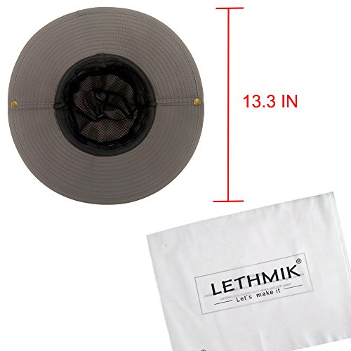 Binding : Apparel Product Description LETHMIK hats collection. LETHMIK Summer Fishing Sun Hat Outdoor Breathable Mesh Wide Brim Safari Boonie Hat;This hat is made of 100% High Quality Polyester Fiber and breathable mesh Material, Breathable and comfortable mesh hat crown, and unique Adjustable chin drawstring design, super cool and practical design. We make this hat the perfect balance between soft, beautiful, lightweight, breathable and durable. The Wide Brim Keeps the sun from your face / neck and offers great protection from the damaging rays. It is a perfect hat for hiking, camping, fishing, tourism, gardening, beach, pool, park, race day events or any outdoor sports and activities. Pair off with your favorite Outfit. Product Care Instructions:Do not wash by hot water; Do not chlorine bleaching; Hang dry in shade; Do not iron; Hand wash or Spot clean recommended! No machine wash or Brush wash. Please check genuine authentic item tag to avoid counterfeit products.Counterfeiters are capable of copying the appearance of lethmik items but there're no "LETHMIK" tags and our packing. Our customer service Email address is: customerservice@lethmik.com ; You can feel free to contact us if you would have any questions, and we will try our best to bring you with the best services. 0