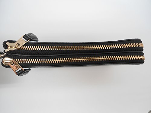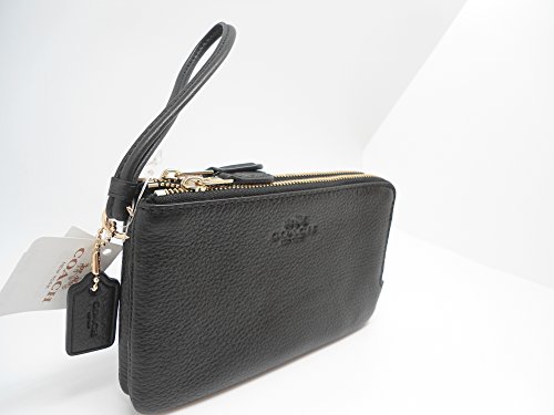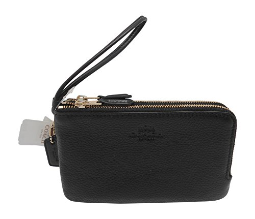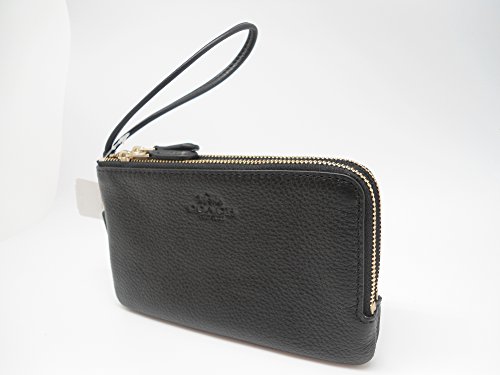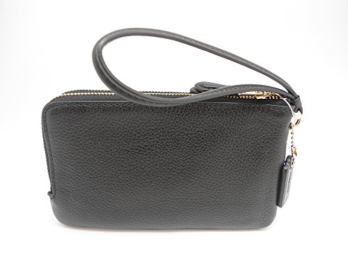 Coach F66505 Pebble Leather Double Corners Zip Wristlet Black