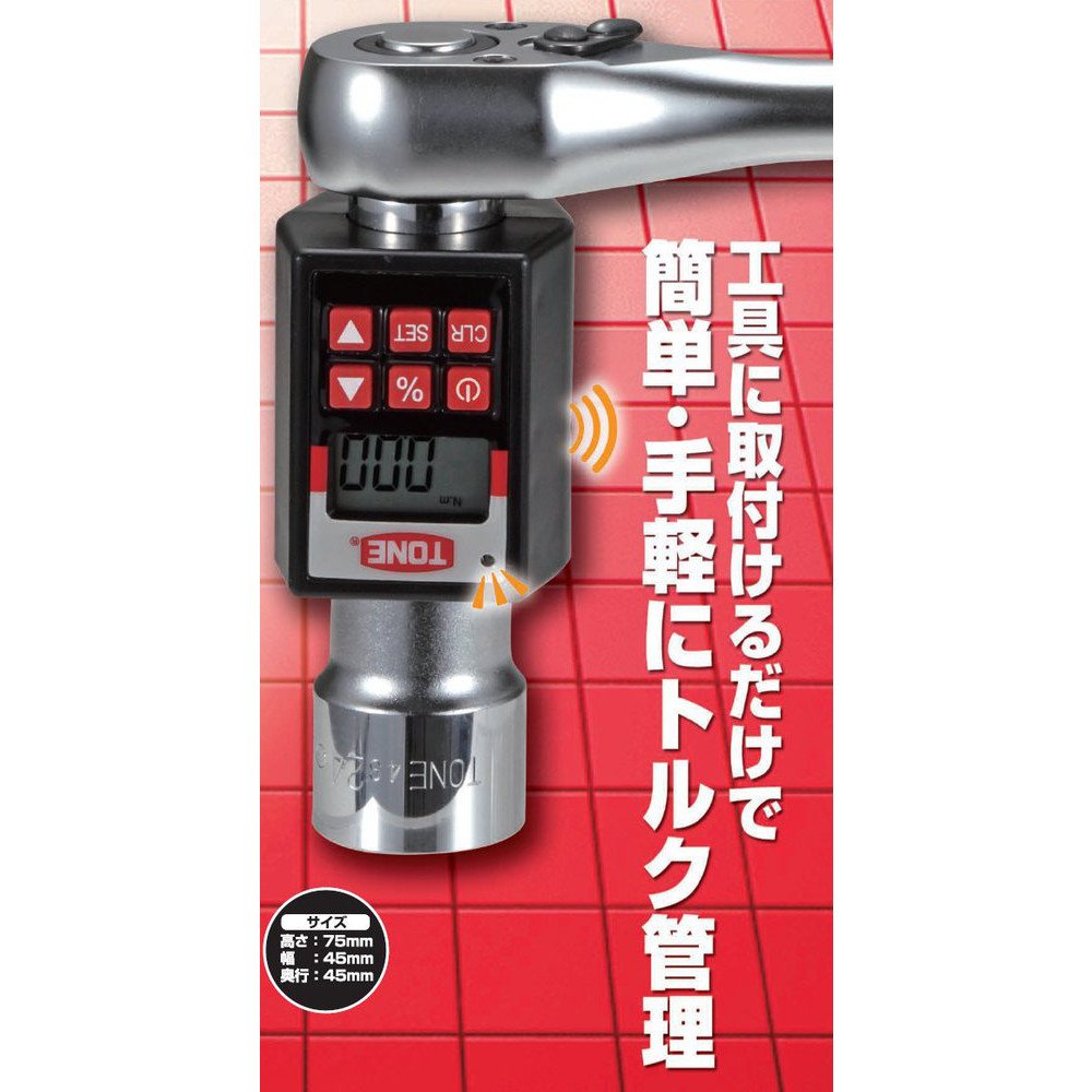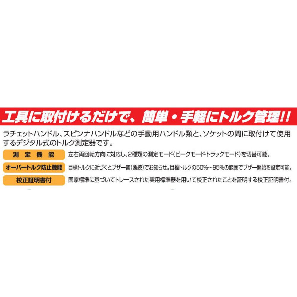 It is a digital type torque measuring device used by attaching between a manual handle such as a ratchet handle, a spinner handle, and a socket.