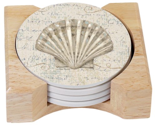 CounterArt Coastal Beauty Design Absorbent Coasters in Wooden Holder, Set of 4