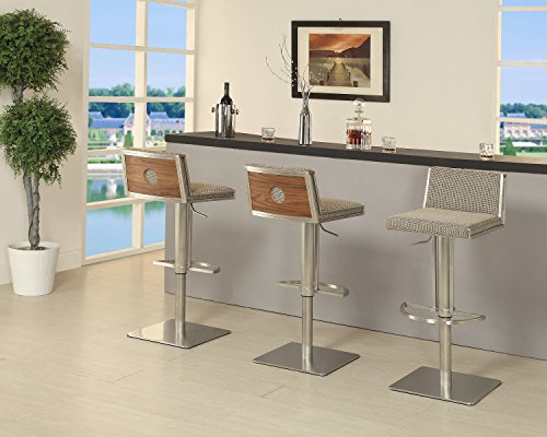 -. Binding : Kitchen -. Brand : AC Pacific -. Color : Beige -. EAN : 0756519676549 -. Feature : Constructed With A Walnut Veneer Backrest and Seat Frame and Upholstered With A Beige Cross Woven Fabric Padding For The Perfect Pairing of Elegance and Pleasure / Forged With a Sturdy Square Metal Base Made of Brushed Stainless Steel with a Curved Pedestal that Adds Class While Supporting Your Feet For Unsurpassable Sturdiness Plus Comfort / Built In Pneumatic Gas Lift Seat Lifts the Seat Elevation from 22" - 32" With Just The Flick Of An Easy Accessible Lift Handle Located Directly Under The Seat / Add A Sophisticated Look To Any Room In Your Home With This Walnut Veneer Framed Barstool Swivel Chair With Beige Plush Padded Seating That Offers A Full 360° Swivel Motion For Easy Maneuvering / Purchase with Confidence. Made and Manufactured by AC Pacific, Combining Comfort, Craftsmanship and Unique Designs Since 1995 -. Label : AC Pacific -. Manufacturer : AC Pacific -. Model : ACBS-ELIO -. MPN : ACBS-ELIO -. PackageQuantity : 1 -. PartNumber : ACBS-ELIO -. ProductGroup : Furniture -. ProductTypeName : HOME_FURNITURE_AND_DECOR -. Publisher : AC Pacific -. Size : 22"-32" -. Studio : AC Pacific -. Title : AC Pacific Contemporary Low Back Height Adjustable Swivel Stainless Steel Barstool, 22"-32", Beige -. UPC : 756519676549