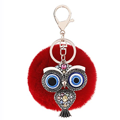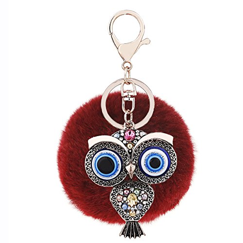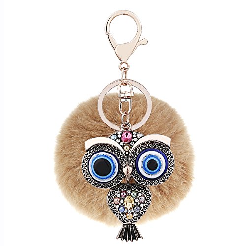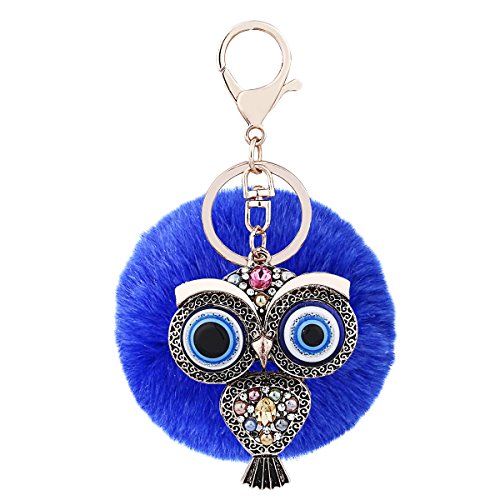 Deacroy Women's Owl Keychain Retro Crystal Rhinestone Soft Puff Ball Bag Charm
