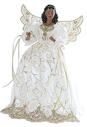 ROMAN 14" WHITE AND GOLD ANGEL CHRISTMAS TREE TOPPER DARK SKIN TONE