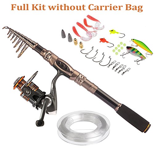 Warm Prompt:we have three different models of the fishing combo & just choose what you need from "select" section.FULL KIT WITH CARRIER BAG: 1 FISHING ROD + 1 FISHING REEL +FISHING LINE + VARIOUS FISHING LURES+ FISHING HOOKS +CARRIER BAG + SOME NESSARY ACCESSORIES;FISHING ROD+REEL: ONLY INCLUDE 1 FISHING ROD + 1 FISHING REEL; FULL KIT: 1 FISHING ROD + 1 FISHING REEL + VARIOUS FISHING LURES+ FISHING HOOKS + SOME NESSARY ACCESSORIES.