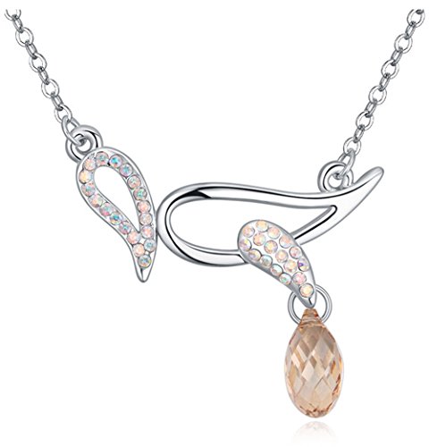 -. Title : Swarovski Elements Crystal Light Coffee Waterdrop Angel wings Pendant White Gold Plated Chain Necklace