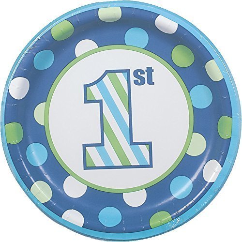 SWEET STRIPES BOY 1ST BIRTHDAY 9" LUNCH/DINNER PLATES (8 CT)