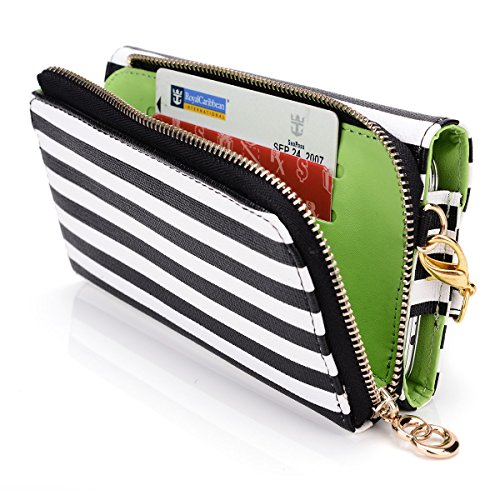 - Title : Sony Xperia Z1s Womens Wristlet Clutch Case {Black and White Stripes With Green Machinel} with Credit Card Holder and Crossbody Shoulder Strap