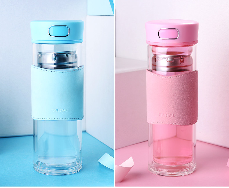 双层保温玻璃杯便携有盖水瓶创意男女办公室水杯过滤茶杯随手杯子