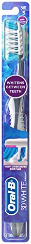 A beautiful smile deserves the best treatment possible. That means whitening even in between teeth for a truly radiant smile. The Oral-B 3D White Radiant whitening toothbrush's unique CrissCross Bristles are angled to whiten between teeth and lift out and sweep away plaque. The Power Tip Bristles' extra length helps to clean those hard-to-reach places. Gentle enough for everyday use, the Soft Gum Massagers provide you with the comfortable clean you need to keep your smile feeling clean and looking radiant.;CrissCross Bristle technology helps whiten between teeth Perfectly angled bristles help lift out and sweep away plaque;Power Tip Bristles help clean hard-to-reach places;Helps whiten teeth by removing surface stains;Soft Gum Massagers gently massage and stimulate gums