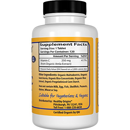 -. Title : Healthy Origins Vitamin C USDA Organic Non-GMO Natural Tablets, 250 mg, 120 Count