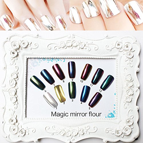 Feature : Hottest trend in the 2016 Summer Mirror Nail Powder / 12 color amazing powder glitter pigment give you a true chrome mirrored shiny effect. / Package: 12 box nail Powder 12 pc Free nail brush / Easy to apply on natural or artificial nails / Attention:UV/LED lamp, UV base gel and UV gel color needed to achieve chrome nails