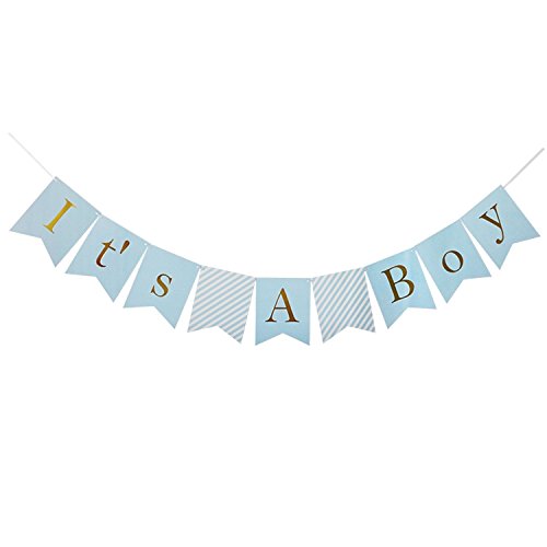 H&W Decor Blue and Gold Baby Shower Decoration Set - It's a Boy | Premium Quality Kit | 23 Pcs | Gold Foil Banner, Confetti Balloons, Tassels and Confetti