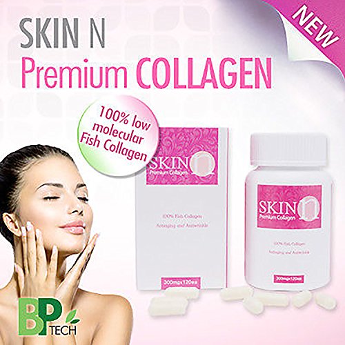 -. Feature : ♥ EFFECTIVE & EFFICIENT ABSORPTION Into Your Body - SKIN N PREMIUM COLLAGEN is 100% comP.R.Ised of Premium Low-Molecular Fish Collagen with an average molecular weight of below 1,000 daltons, unlike other existing collagen products with bigger molecular weight. This way, your body will be able to absorb collagen more effectively and efficiently and immediately start to see results in your skin. / ♥ SKIN N PREMIUM COLLAGEN for INNER & OUTER BEAUTY - Collagen is the most abundant protein in your body and it's what gives your skin strength and elasticity while also replacing dead skin cells. Production of collagen in your body will naturally slow as you age, and that's why absorption of supplemental 100% Low-Molecular Fish Collagen will help you recover your youthfulness by preventing skin damage and aging. / ♥ BEING PREPARED with SKIN N PREMIUM COLLAGEN - Collagen synthesis in the body gradually reduces starting around the age of 25 for the average female and male adult. Reduction in synthesis dramatically peaks at around 40 years old. Thus, it is good to begin taking supplemental collagen in the early stages when you're in your 20's and 30's for long lasting skin and body health. / ♥ NO HARMFUL & UNWANTED INGREDIENTS - No preservatives, no coloring, no caffeine and no fats are contained in this product. Using only 100% Low-Molecular Premium Fish Collagen, you can trust in SKIN N PREMIUM COLLAGEN to care for your INNER and OUTER BEAUTY. / ♥ HOW TO USE - The SKIN N PREMIUM COLLAGEN Capsule Recommended Intake: 2 Capsules, 2 times a day.