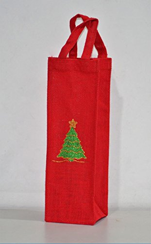 Christmas Single Bottle Natural jute wine Bag (Pack of 5)